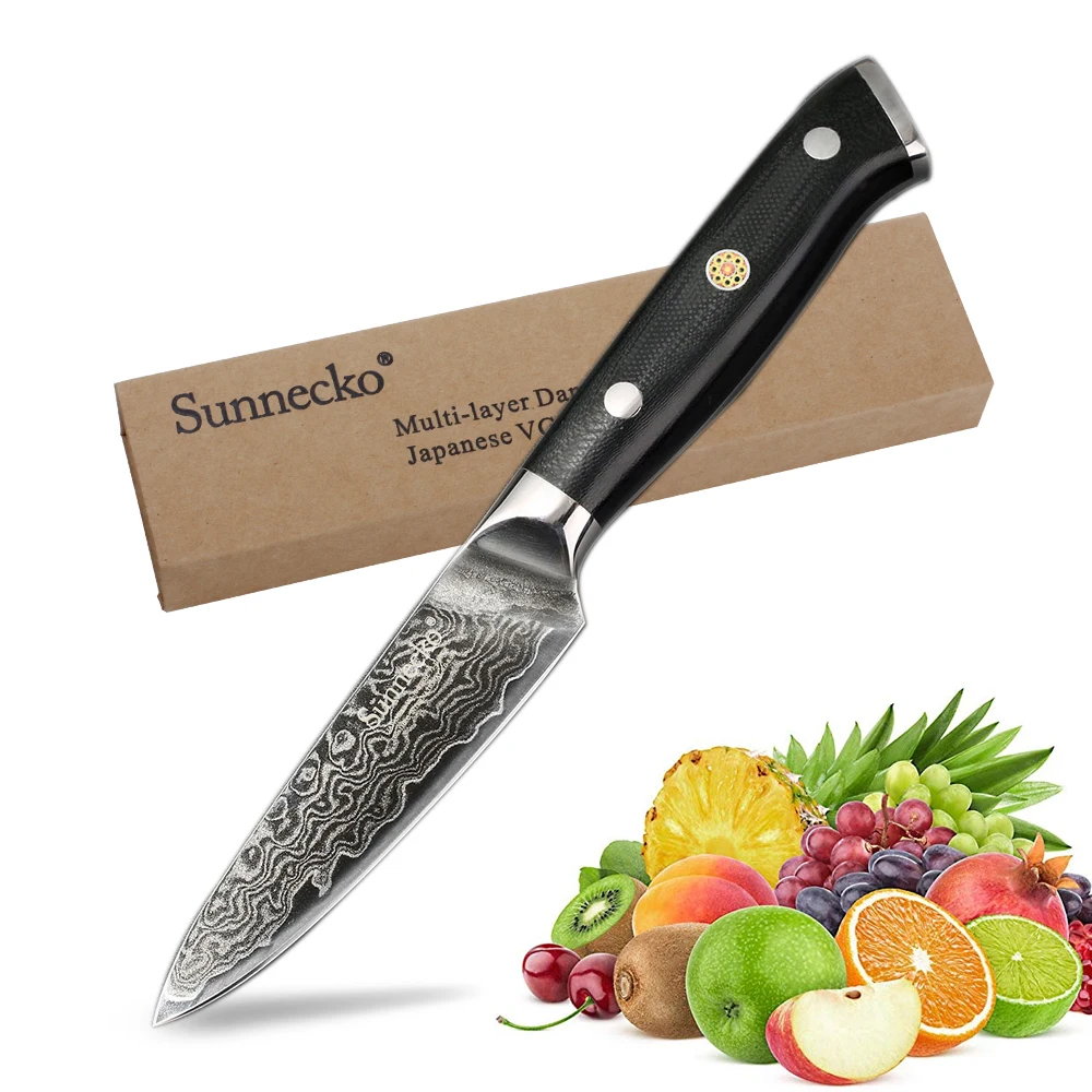 Special Offer Sunnecko 3,5 pulgadas Paring cocina Chef cuchillo japonés Damasco VG10 hoja de afeitar de acero afilada G10 mango Chef cortador de frutas herramientas Discount 58% Today!