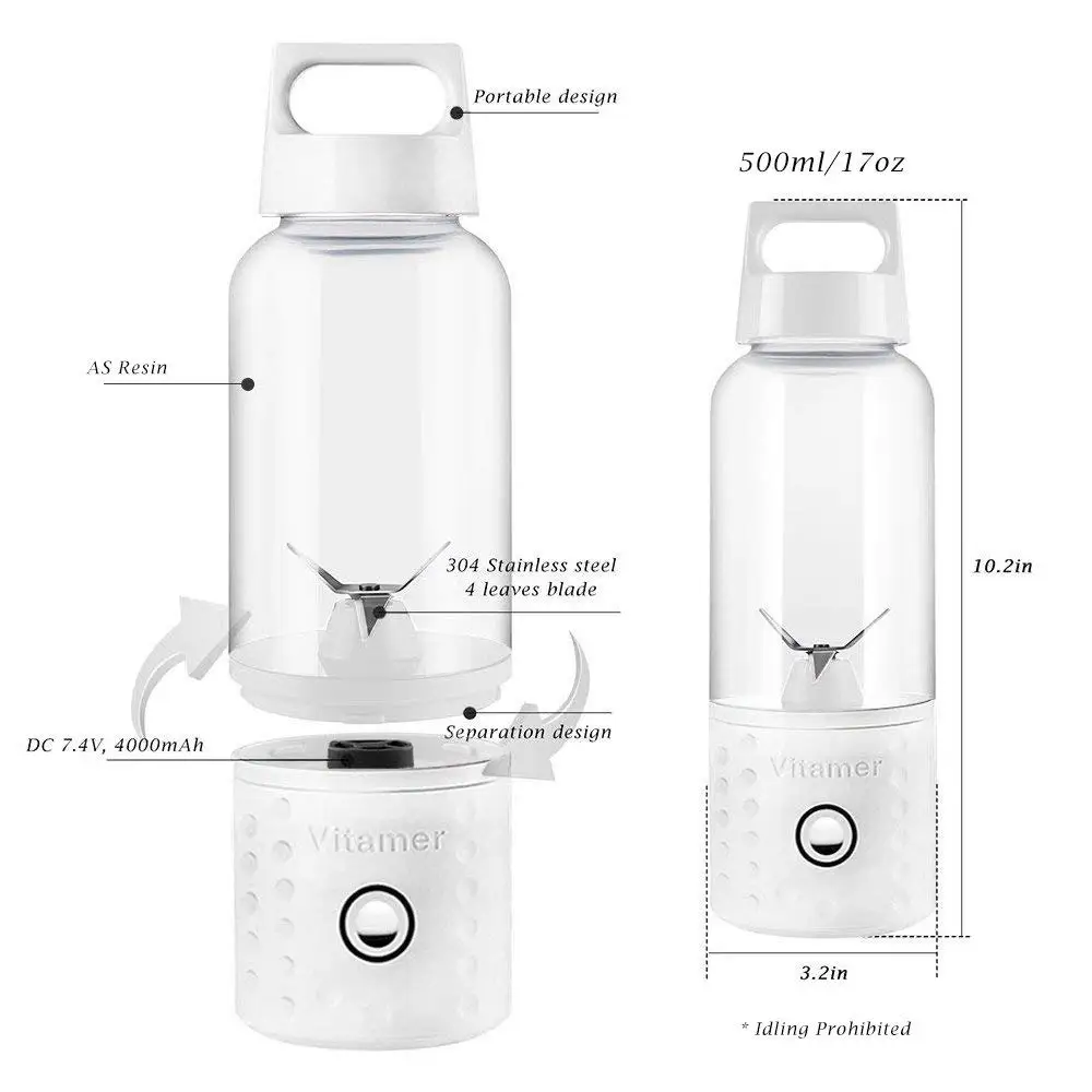 Product Name: Licuadora portátil, licuadora de batidos taza exprimidora USB, mezcladora de frutas de 17 onzas con baterías recargables de 4000 mAh, extraíble C