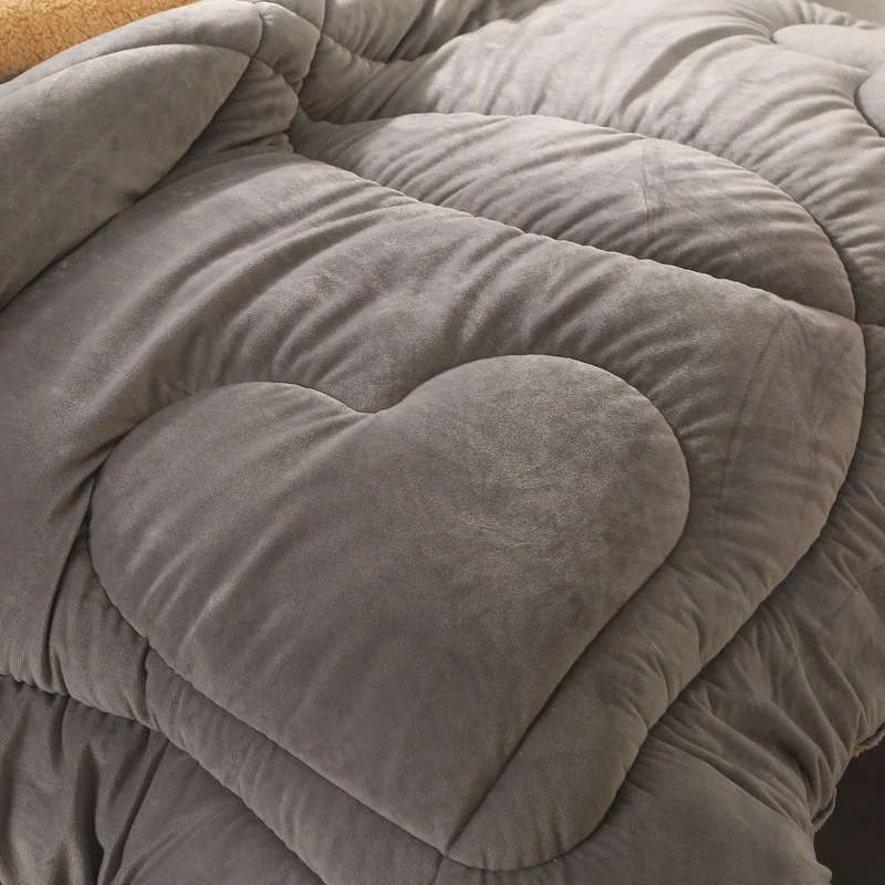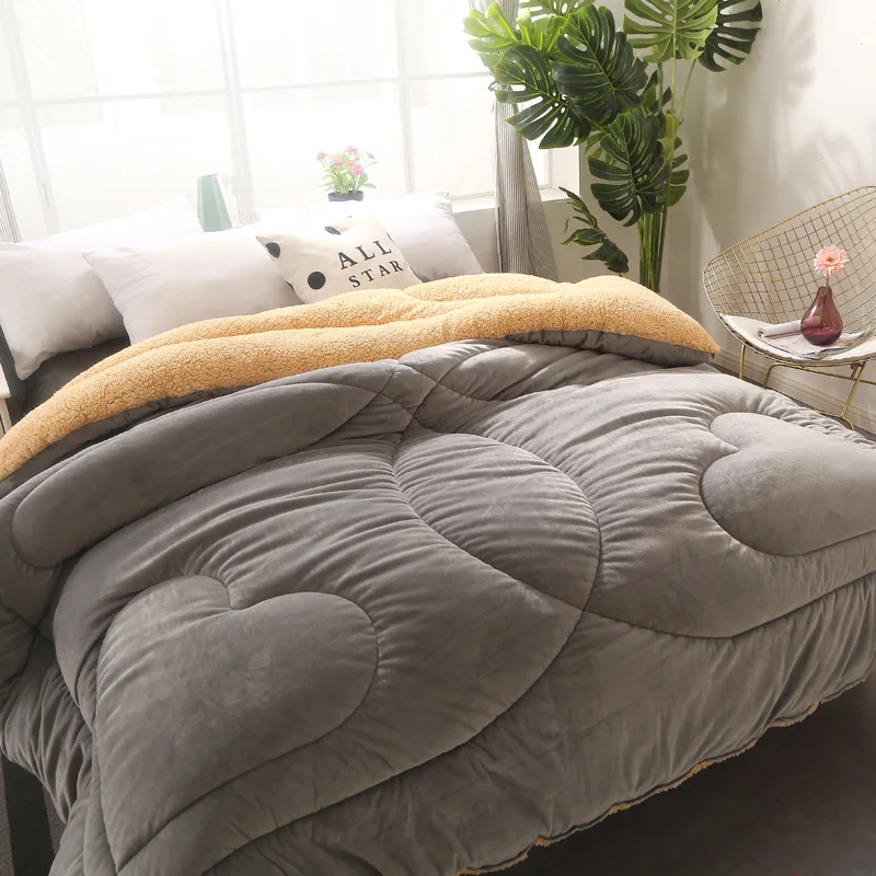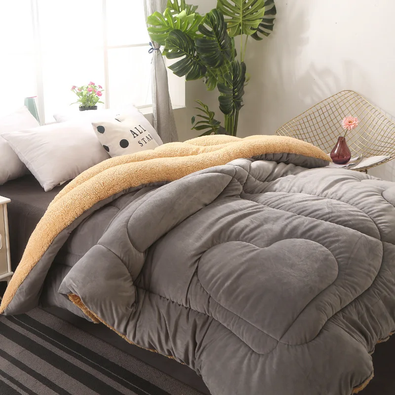 Product Name: Tejido de cachemira de cordero sólido y terciopelo cálido invierno lana edredón grueso edredón king queen edredón de un solo tamaño Camelhair