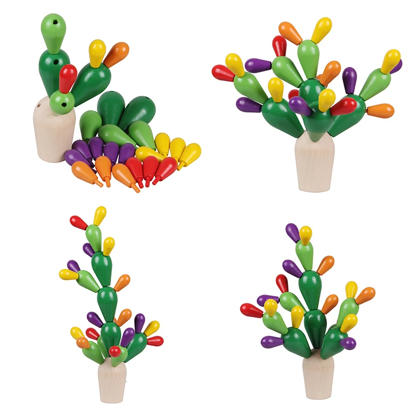 Special Offer Bloques de madera 28 piezas lote bloques de madera de Cactus juguetes infantiles bloques de madera juguetes educativos para niños Montessori Discount 50% Today!