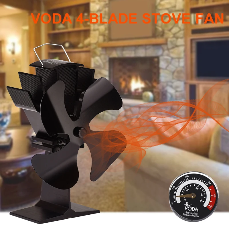 Product Name: Ventilador de la estufa con 4 cuchillas con el termómetro del hogar ventilador silencioso de la chimenea para la madera quemador de troncos Chimenea eficiente eco ventilador estufa