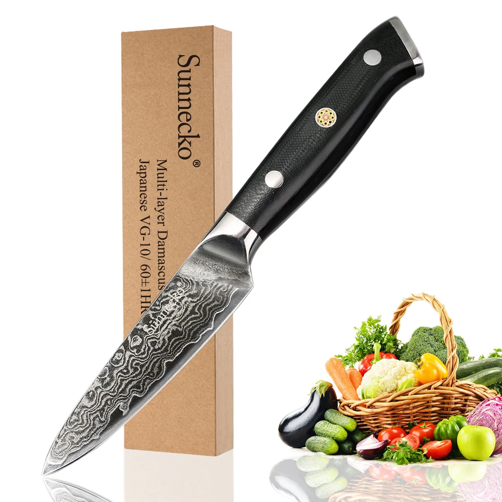 Special Offer SUNNECKO Premium 3,5 \"pulgadas cuchillo de acero de Damasco cuchillos de cocina japonesa VG10 hoja afilada fruta cortador G10 manejar Discount 59% Today!