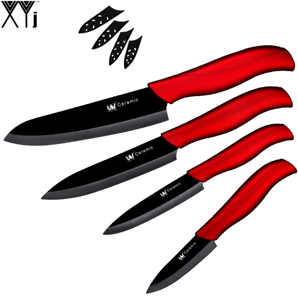 Product Name: Cuchillos de cerámica XYj mango rojo cuchillo de cocina 3 \"4\" 5 \"6\" cuchillos de cocina conjunto de cocina negro cuchillo de hoja de Zirconia con vaina negra