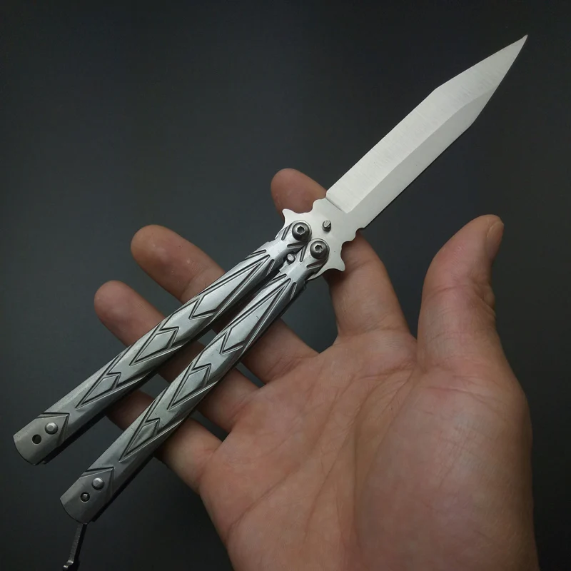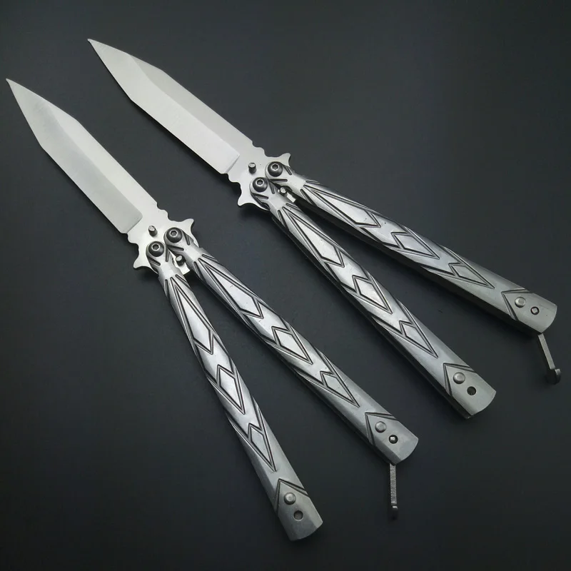 Product Name: Sin borde Acero inoxidable plata negro práctica mariposa en el entrenamiento de cuchillos cuchillo plegable EDC herramienta de Camping al aire libre cuchillo