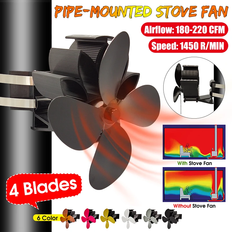 Special Offer 4 aspas de pared ajustables ventilador de estufa de alimentación térmica quemador de madera Ecofan silencioso ventilador para hogar distribución eficiente del calor Discount 15% Today!