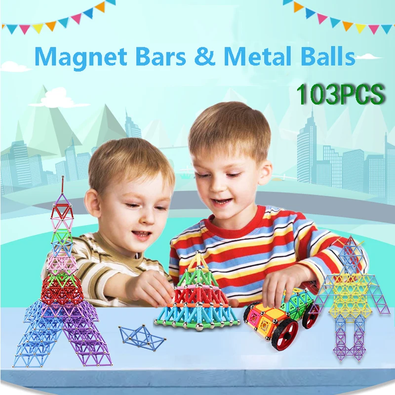 Product Name: 103 piezas Juego de bloques de construcción de Juguetes DIY 3D diseño magnético ladrillos educativos niños DIY bloques de juguete
