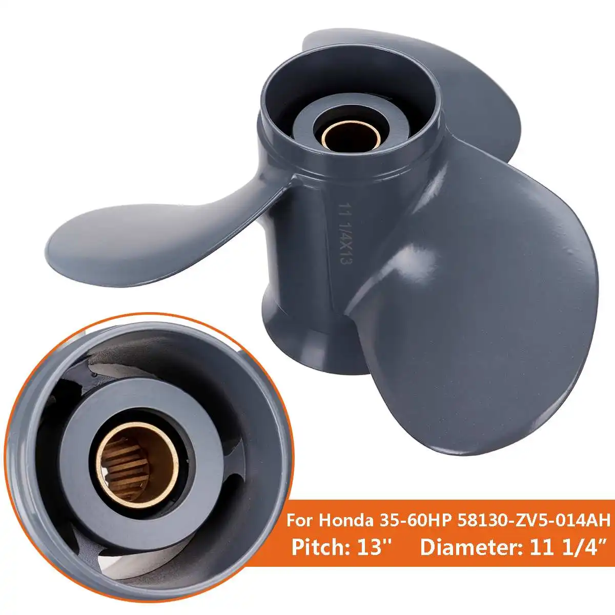 Product Name: 58130 ZV5 000ZA aleación de aluminio 11 1 4x13 hélice de barco fuera de borda para Honda 35 60HP gris 3 cuchillas 13 dientes esféricos marino partes