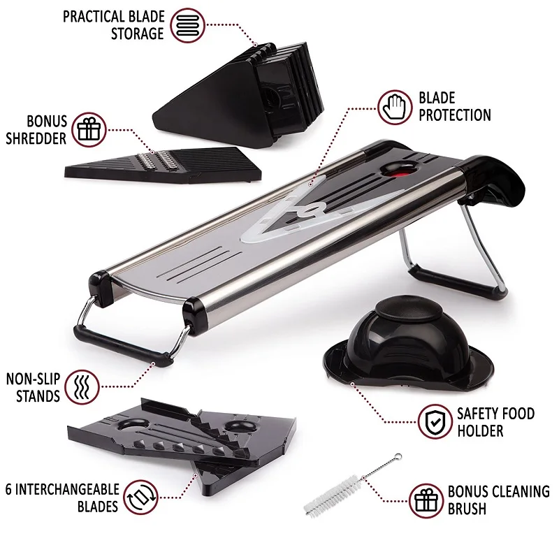 Product Name: VOGVIGO color al azar profesional multifuncional v slicer Mandoline cortadora de alimentos cortador de frutas y verduras con 5 cuchillas