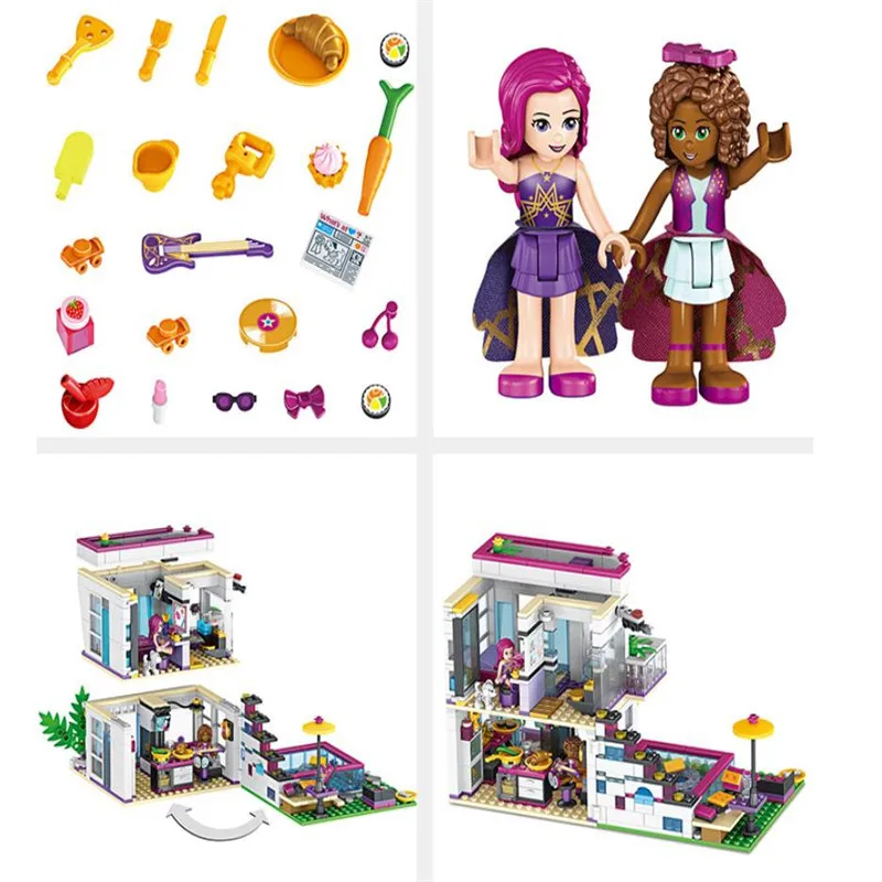 Product Name: 644 Uds Livi es Estrella de Pop, modelo de Casa kits de construcción Compatible Legoings amigos 41135 modelo Emma Mia 3D figuras de juguete de bloques de 10498