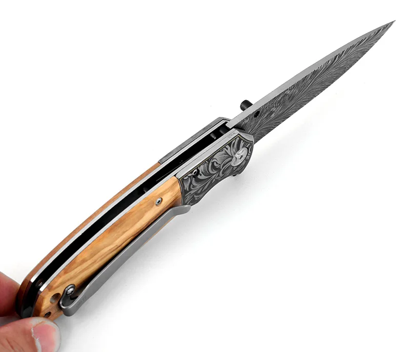 Product Name: Cuchillo plegable KKWOLF cuchillo de caza supervivencia Camping cuchillo de bolsillo portátil al aire libre táctico caliente Damasco láser patrón herramienta