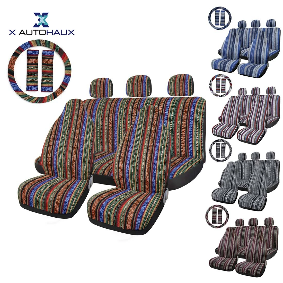 Product Name: X autohaux conjunto de fundas de asiento de coche Baja manta de silla de montar tejido ajuste Universal la mayoría de las fundas de coches con Protector de la cubierta del volante