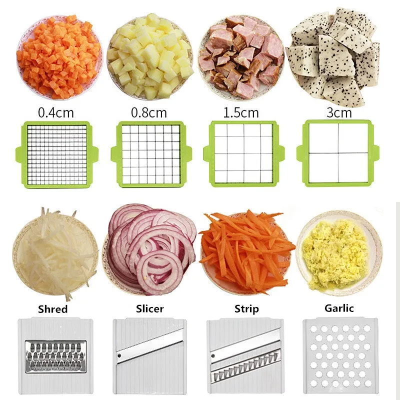 Product Name: Cortador de vegetales Dicer Mandoline 8 cuchillas de cubitos cuadrícula Manual multifunción patatas zanahoria rallador cortador de cocina herramienta
