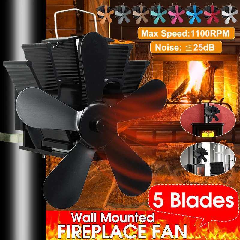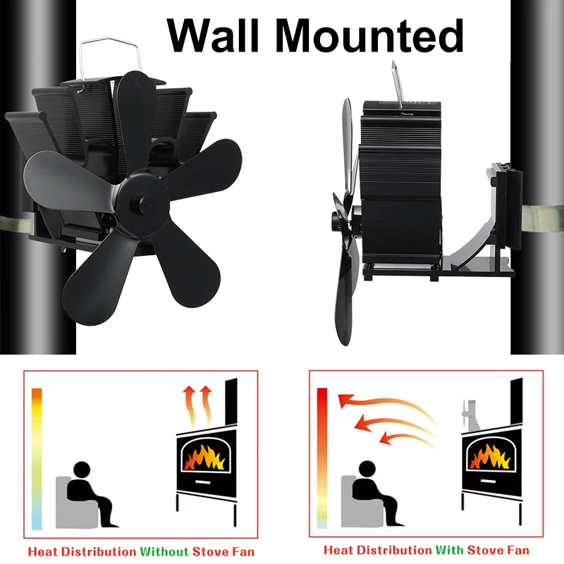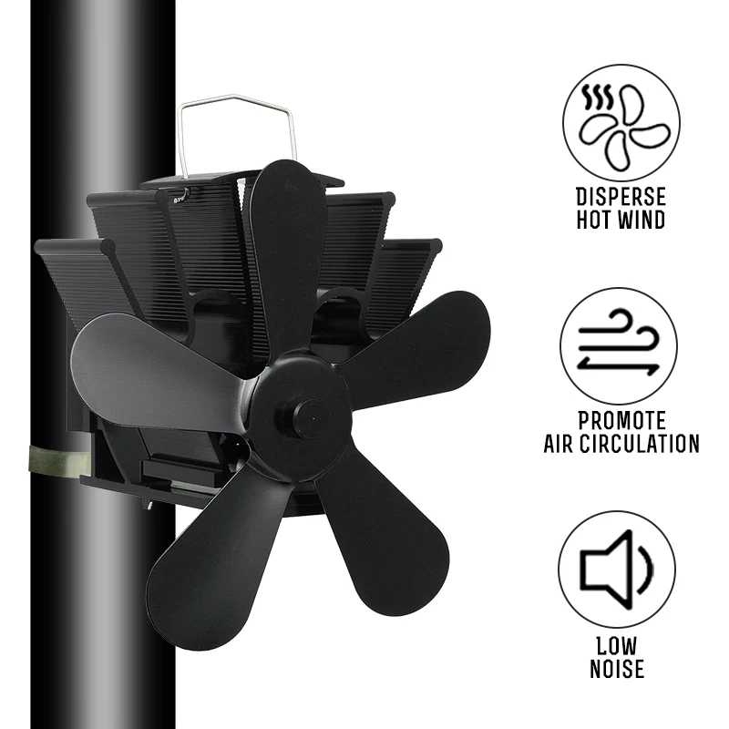 Special Offer Chimenea montada 5 aspas ventilador de estufa de calor komin logg quemador de madera respetuoso con el medio ambiente ventilador silencioso hogar eficiente distribución de calor Discount 40% Today!