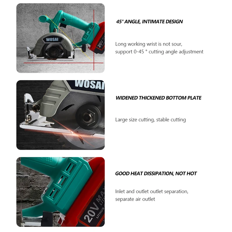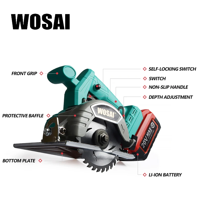 Product Name: WOSAI 20V sierra Circular sin escobillas herramientas eléctricas hojas de sierra 110mm hoja para sierra Circular de madera de alta potencia y máquina de corte