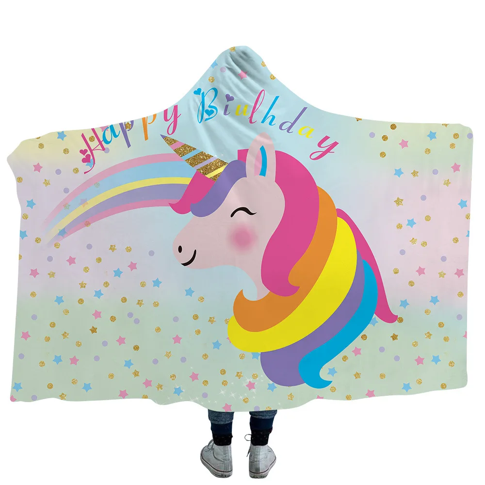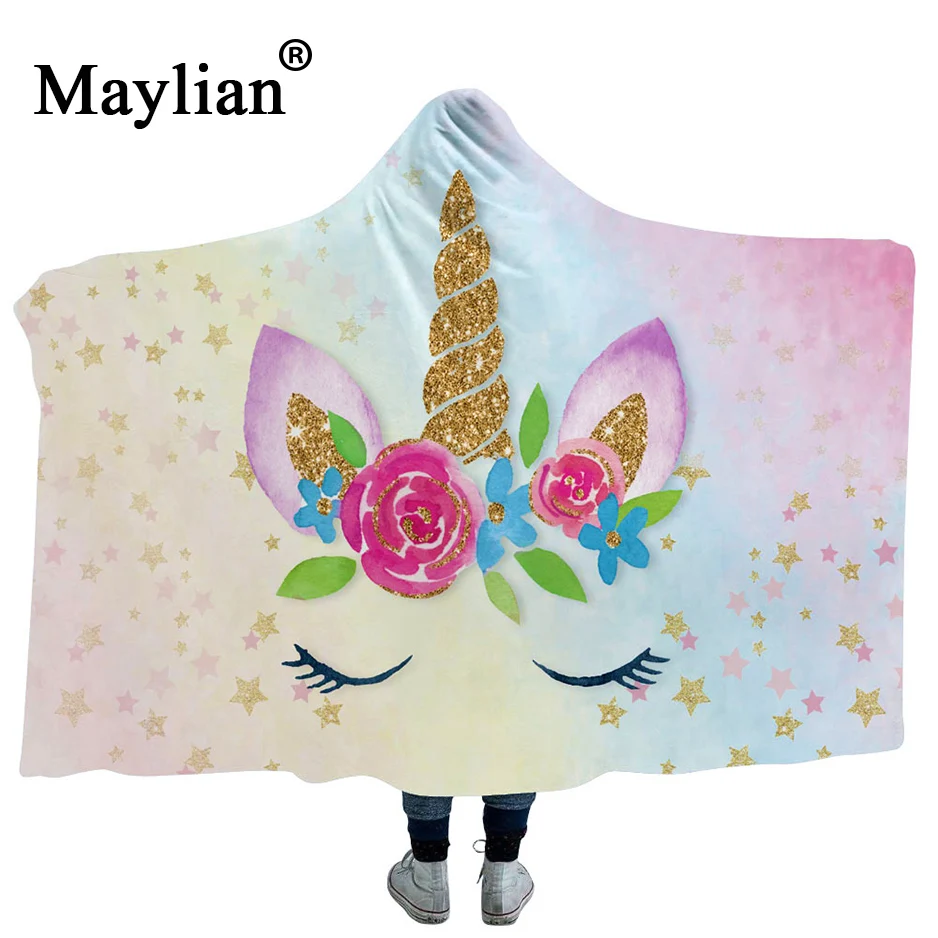 Special Offer 3D de felpa flor Champagne unicornio punto patrón con capucha manta para adultos chico cálido usable de mantas B69 Discount 50% Today!