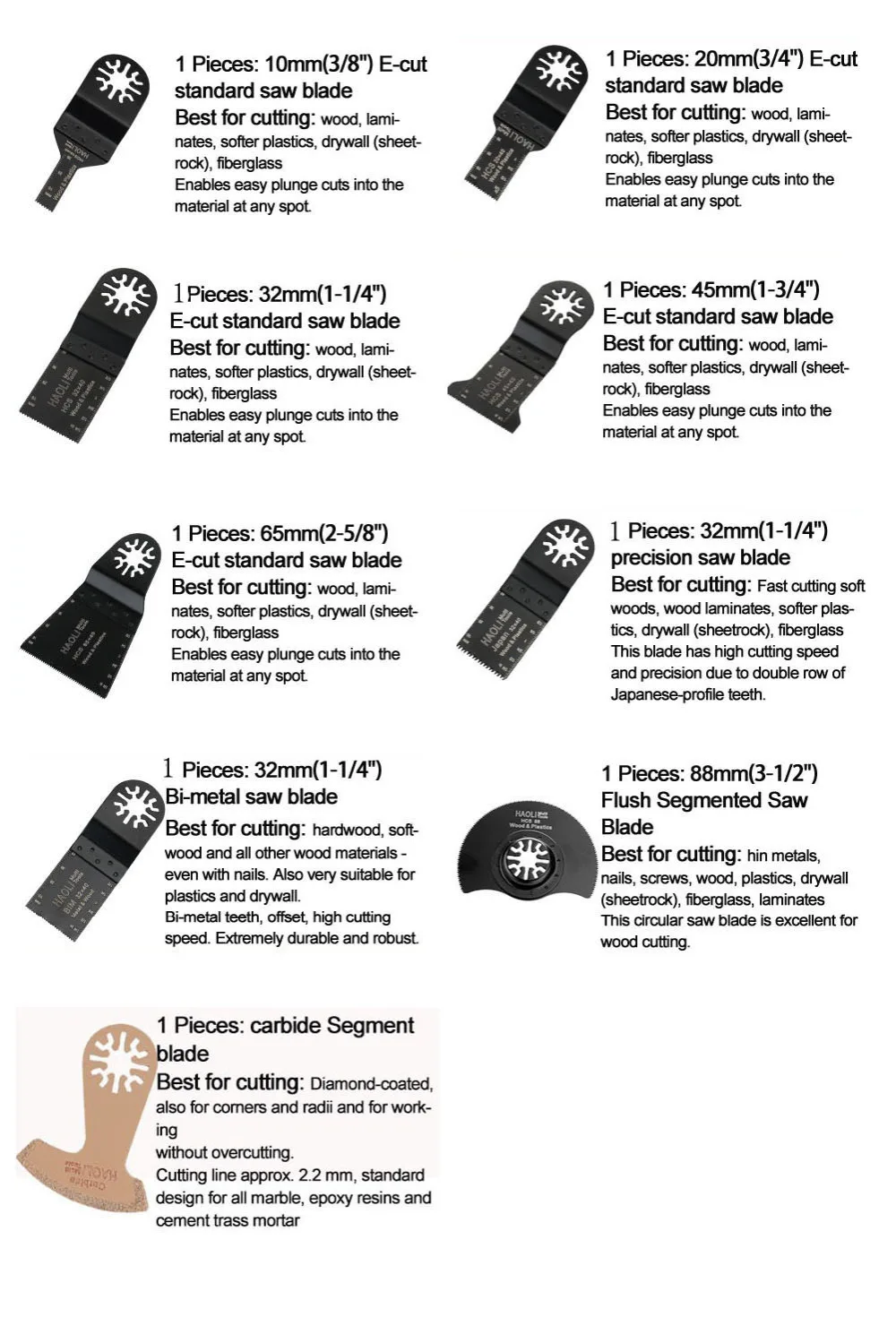 Product Name: 9 unids set hojas de sierra oscilantes accesorios aptos para herramientas eléctricas Multimaster como Fein, dremel, Bosch