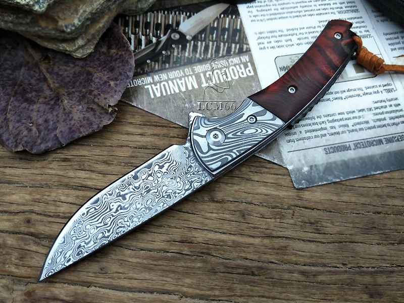 Product Name: LCM66 cuchillo plegable Damasco hecho a mano forjado cuchillo de caza 60vc ébano mango con cuchillo portátil Herramientas afiladas al aire libre knif