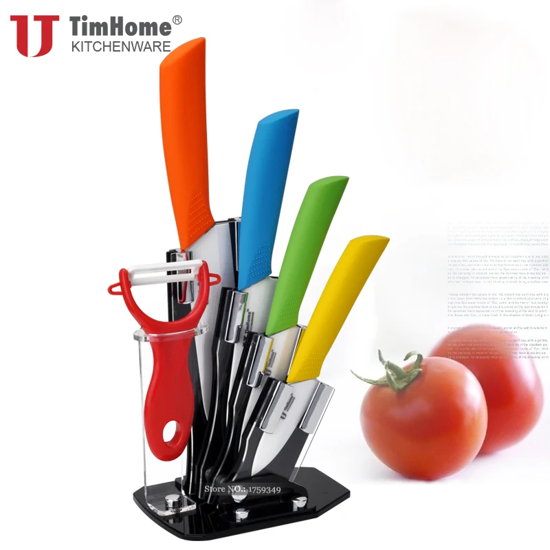 Special Offer Juego de cuchillos de cocina de cerámica cuchillos de chef de hoja de cerámica con ABS + TPR mango colorido Original Timhome pelado para fruta Discount 25% Today!