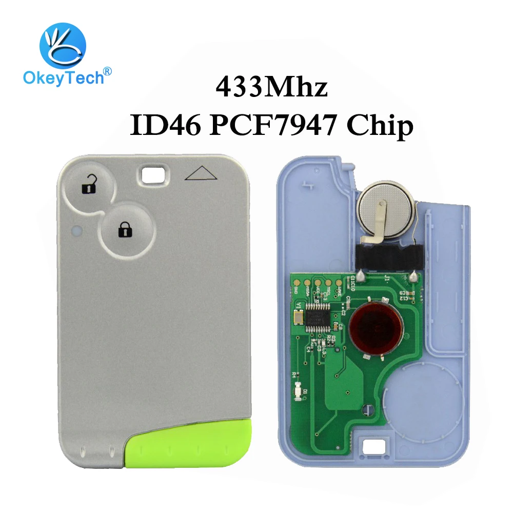 Special Offer OkeyTech con la hoja en blanco sin cortar de emergencia 433mhz ID46 PCF7947 Chip de Control remoto inteligente llave de auto y tarjeta para Renault lago 2 botón Discount 52% Today!