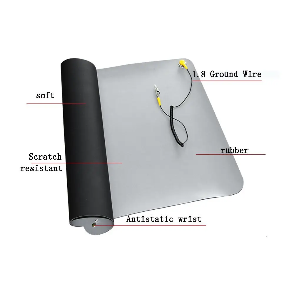 Product Name: Alfombrilla antiestática de 700x500x2mm + cable de tierra + muñequera para teléfono móvil electrónica sensible para reparación de ordenadores almohadilla de trabajo
