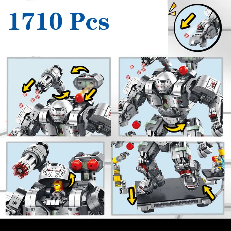 Product Name: 1710 Uds nueva llegada Marvel Avengers superhéroes Super gran tamaño Edición Limitada guerra máquina Guerrero bloques de construcción juguetes regalos