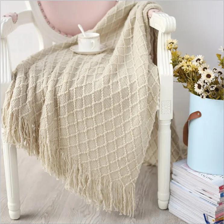 Product Name: Manta de viaje de punto manta gris amarillo negro gris sofá manta borlas manta de aire acondicionado 130x170cm