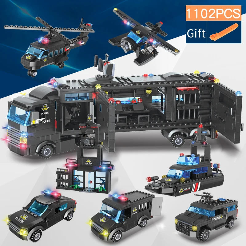 Special Offer 1122 piezas de SWAT de la policía de la ciudad de serie bloques de construcción del vehículo helicóptero de policía de la ciudad de Staction bricolaje ladrillos Compatible con LegoED bloque figuras juguetes para niños Discount 48% Today!