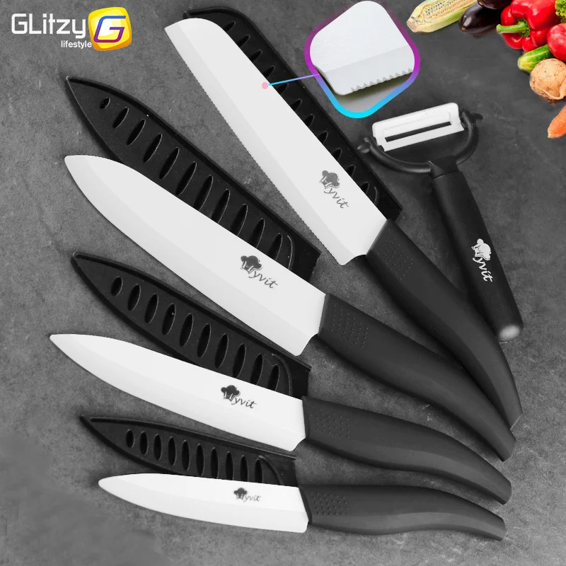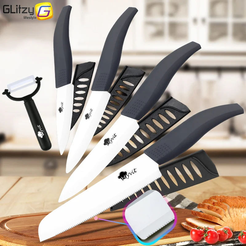 Special Offer Cuchillo de cerámica hoja blanca Zirconia 3 4 5 pulgadas + 6 pulgadas cuchillo de pan serrado de cocina + juego de pelador Chef cocina cuchillo de fruta Discount 50% Today!