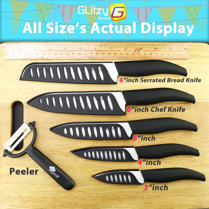 Product Name: Cuchillo de cerámica hoja blanca Zirconia 3 4 5 pulgadas + 6 pulgadas cuchillo de pan serrado de cocina + juego de pelador Chef cocina cuchillo de fruta