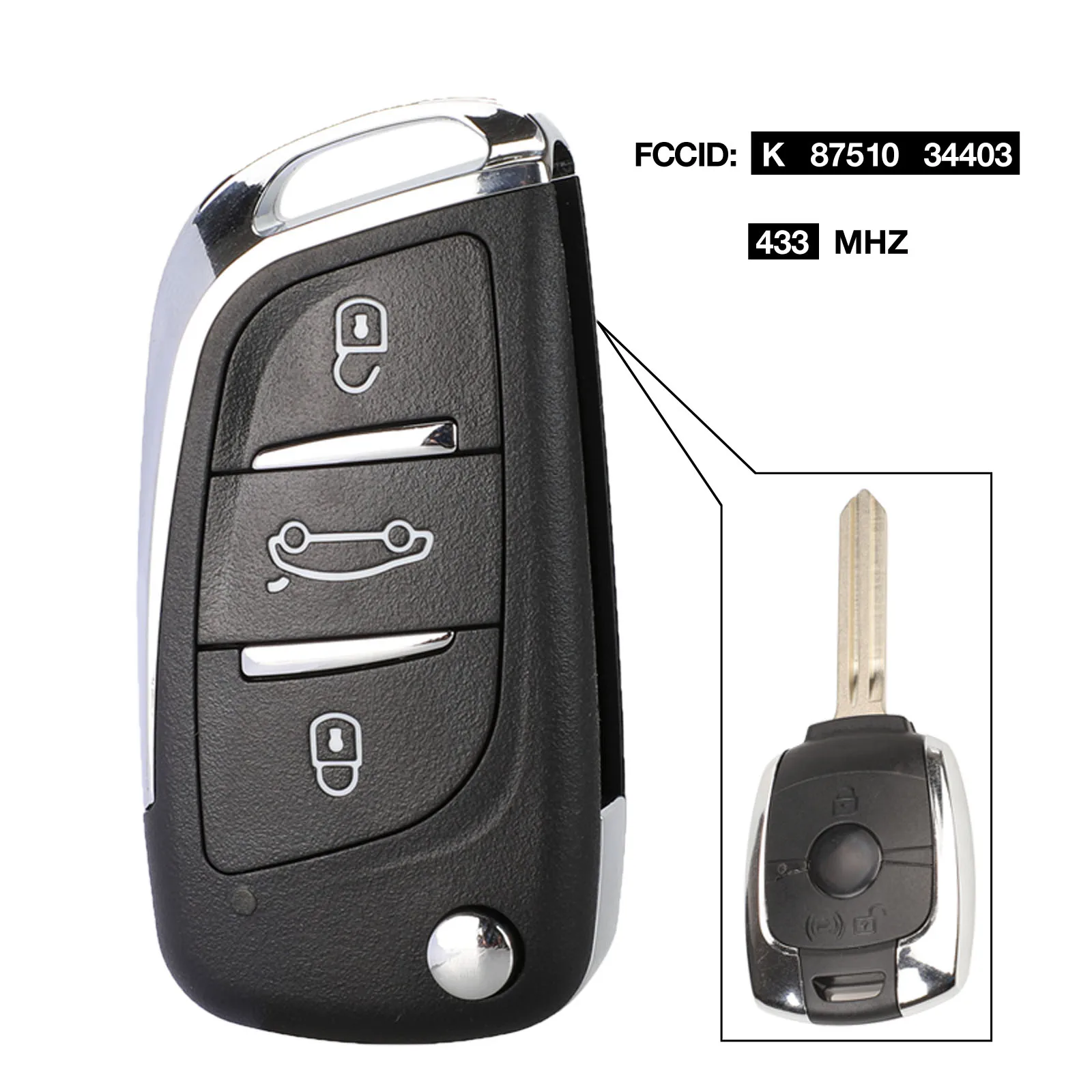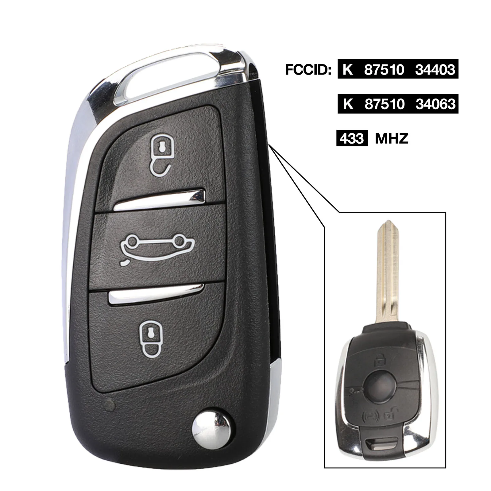 Product Name: Kuery 3 botones de control remoto para llave SSANGYONG con electrónica 433 MHZ Actyon Kyron Rexton Korando llaves de coche sin cortar