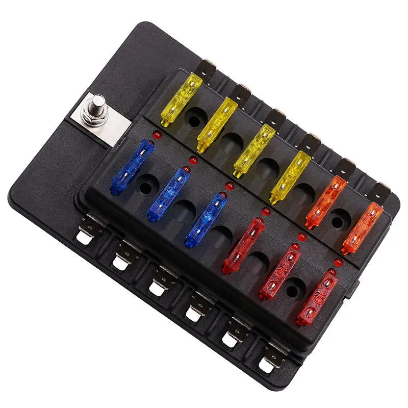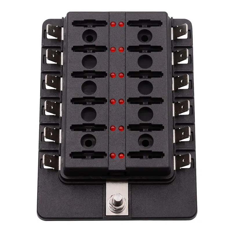 Product Name: Soporte de caja de fusibles de cuchilla de 12 vías con Kit de luz de advertencia LED para coche barco triciclo marino 12V 24V CS 579B4
