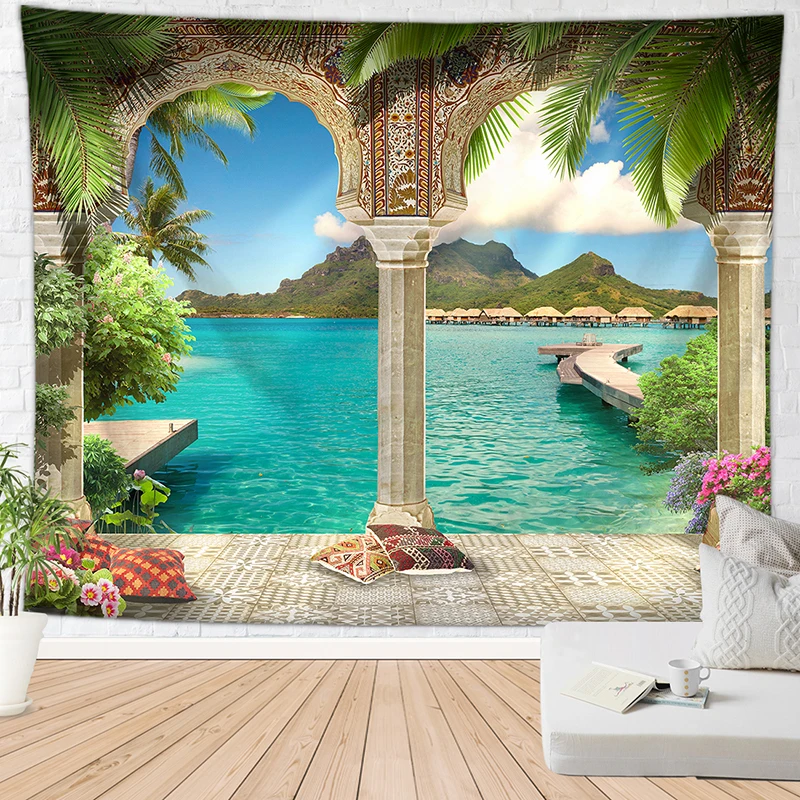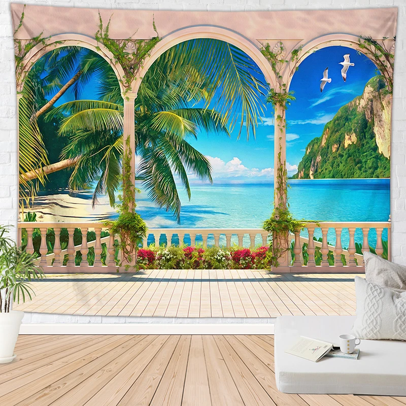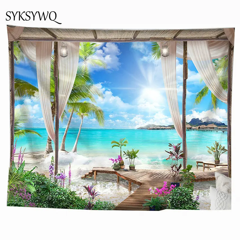 Product Name: Mar playa tapiz palmera alfombra colgante para pared flor arena playa pared decoración manta casa