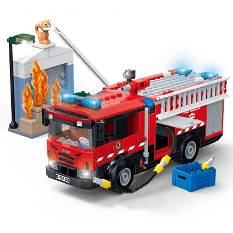 Special Offer 2019 nueva serie de conjuntos de bomberos ciudad gudi, escalera, camión, bloques de construcción, modelo clásico, juguetes para niños Discount 40% Today!