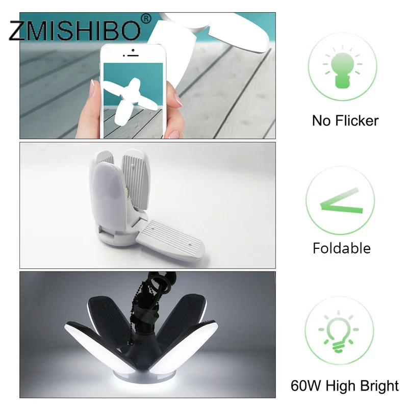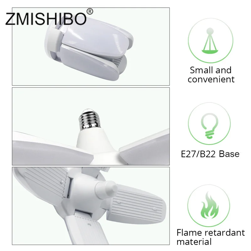 Product Name: ZMISHIBO 60W E27 B22 bombilla LED ventilador plegable ángulo de hoja ajustable 110 V 220 V lámpara súper brillante luces de ahorro de energía para el hogar CE RoHS
