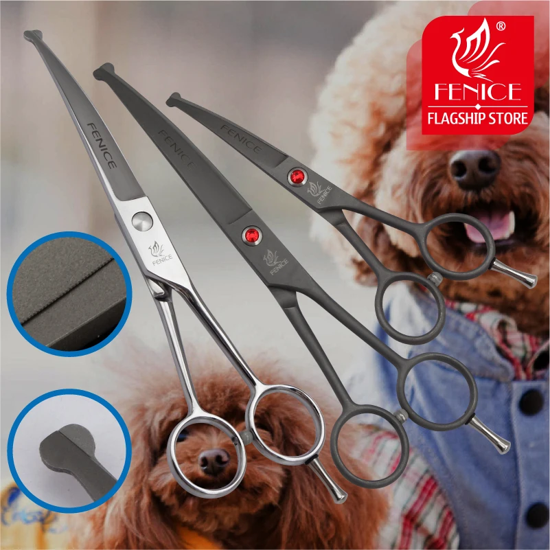 Special Offer Fenice DE ALTA CALIDAD 4,5 7,0 pulgadas de acero para perros con seguridad puntas redondas superior de aseo herramienta de tijeras pequeñas hoja curvada de 15 grados Discount 5% Today!